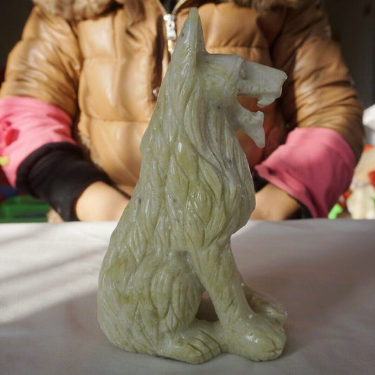 1.6KG 3.5LB 7.9" Natural Serpentine Jade Xiuyu Crystal Wolf Carved Liaoning China