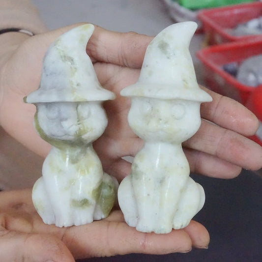 10Pcs 2.5KG 5.5LB Natural Cauliflower Jasper Crystal Wizard Cat Carved Sculpture Carvings Healing
